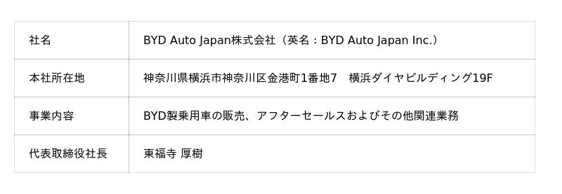 【BYD Auto Japan株式会社について】