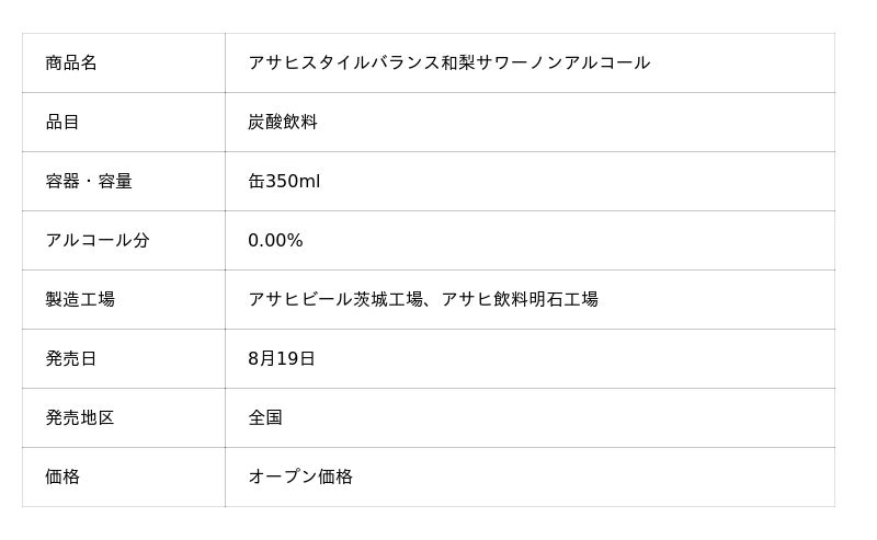 『アサヒスタイルバランス和梨サワーノンアルコール』8月19日から期間限定発売