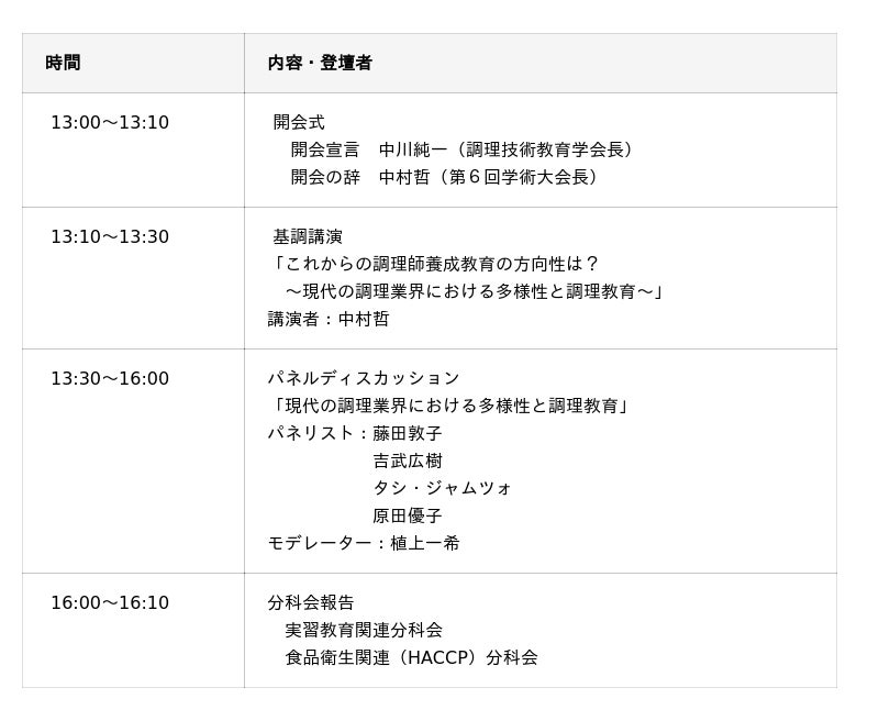 調理技術教育学会 第6回学術大会