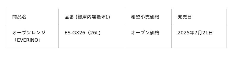 オーブンレンジ「EVERINO」(ES-GX26)新発売