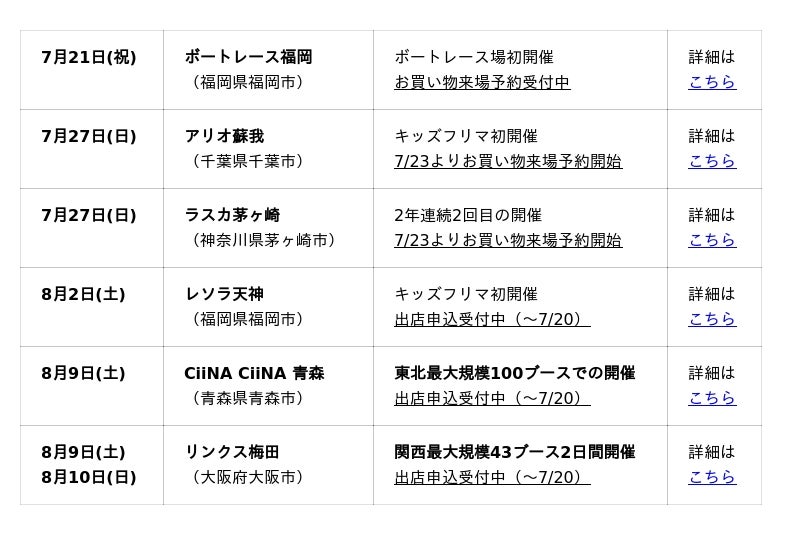 夏休みは全国各地でキッズフリマ!大阪、青森はエリア史上最大規模での開催。限定のオリジナルエプロンのプレゼントも。