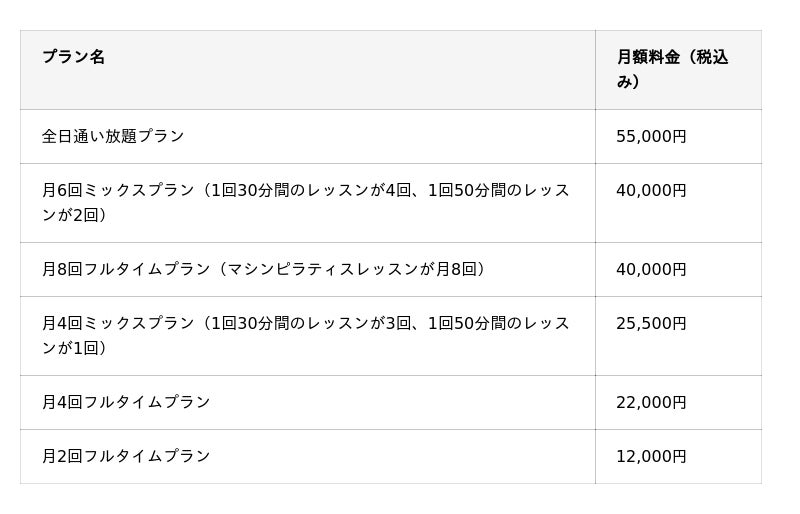 <マシンピラティス料金プラン>