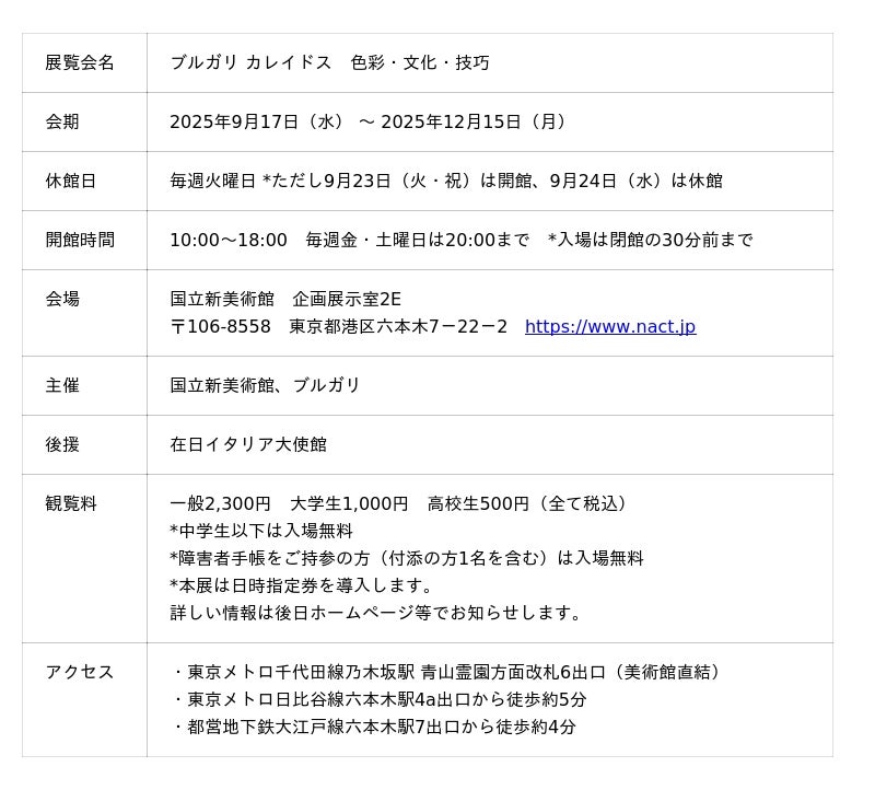【ブルガリ】国立新美術館とブルガリが、日本におけるブルガリの過去最大の展覧会「ブルガリ カレイドス 色彩・文化・技巧」を開催