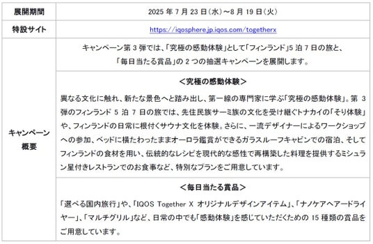 現在展開している、「IQOS Together X」の2025年キャンペーン第3弾の概要は下記の通りです。詳細は特設サイトをご覧ください。