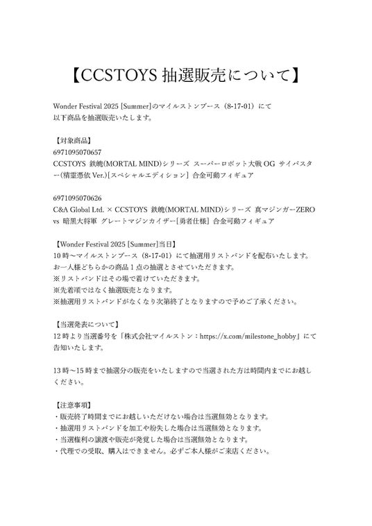 CCSTOYSの一部商品におきまして数量限定の抽選販売を行います。