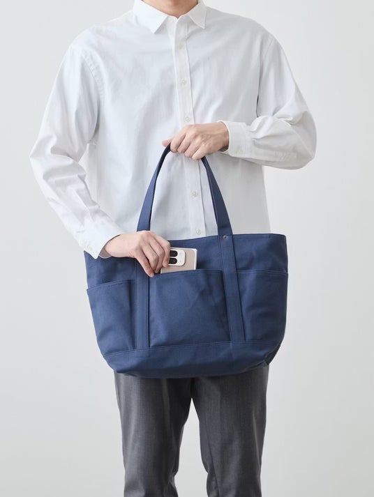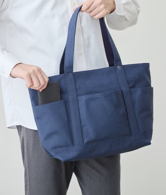 この「6ポケット2way帆布トート」は、カジュアル過ぎない上品な表情に仕上げています。