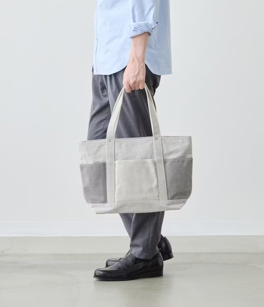 織布技術を追求してきた帆布工場が、織り方だけで表情に違いを作った遊び心のあるバッグです。