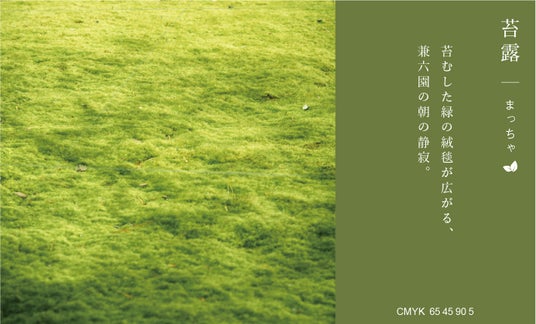 まっちゃ:苔むした緑の絨毯が広がる、兼六園の朝の静寂。(苔露)