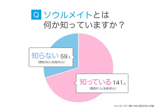 成人男女200人に「ソウルメイトは何か知っていますか?」とアンケート調査したところ、約7割の人が「知っている」と回答しました。