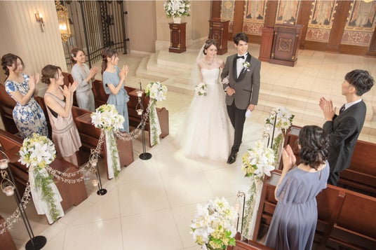 本番さながらの演出で、大聖堂のバージンロード・フラワーシャワー・光と音の演出を体感できます。