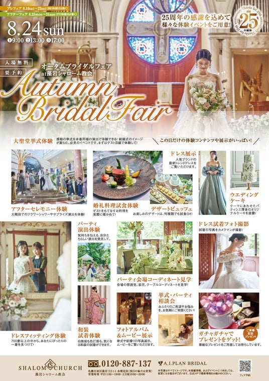 藻岩シャローム教会 オータムブライダルフェア開催日: 2025年8月24日(日)