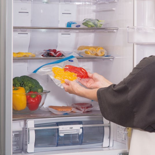 真空パックにすることで食材の臭い移りも防ぐことができます。また、食材を圧縮させコンパクトにまとめることができ、冷蔵/冷凍庫内をすっきり収納するのにも役立ちます。