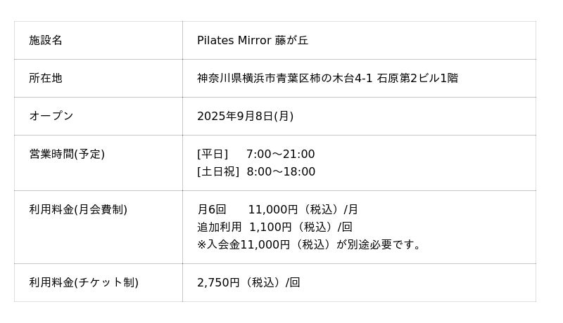 Pilates Mirror(ピラティスミラー)9月8日に横浜市青葉区にオープン!