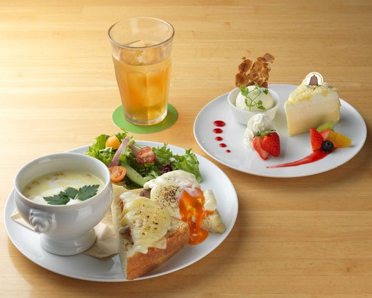 カフェ棟では自慢のパンケーキや、ランチで人気のビーフストロガノフオムライスを楽しむことができます。