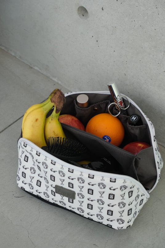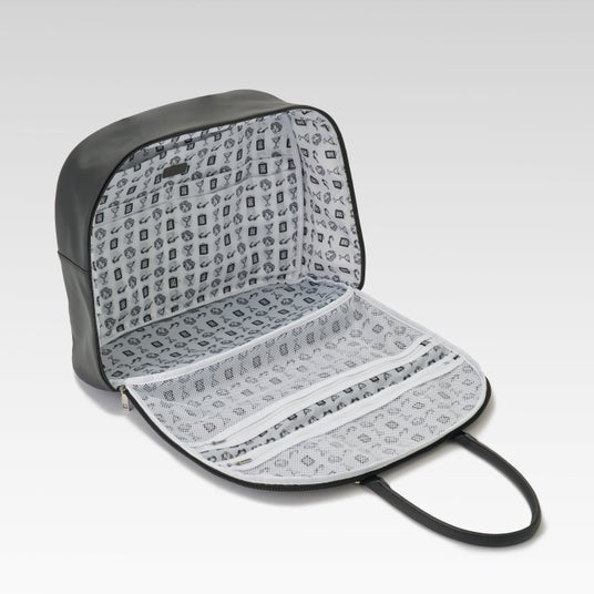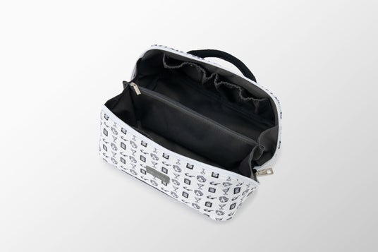 化粧品や洗面道具などをたっぷり収納できる人気ポーチのコラボ限定バージョン。フルオープンタイプで中身が一目で確認でき、内ポケットを多数搭載しているので、小さなメイク用品やガジェット類も整理整頓しながら収納できます。