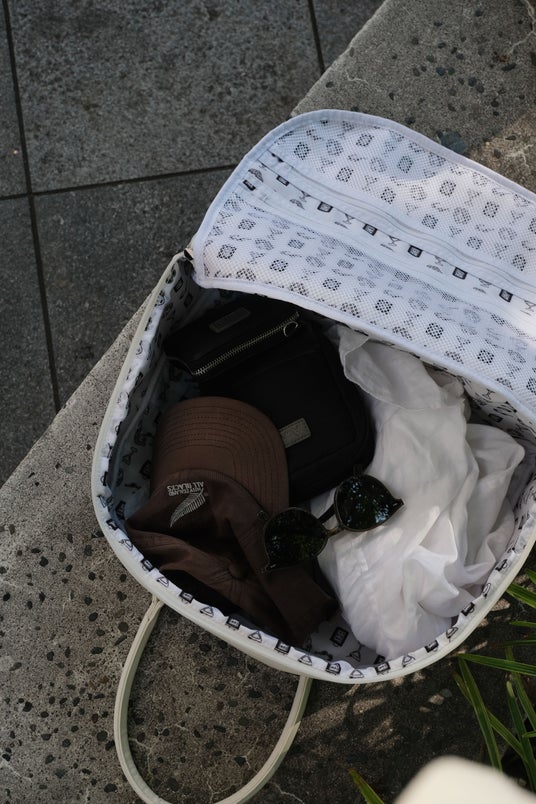 今回のコラボレーションでは、とんだ林蘭さんが旅から感じたインスピレーションをもとに描き下ろしたアートを、Awwの人気アイテムにデザイン。サングラス、日焼け止め、カクテルグラス、女性の横顔といった、旅先のワンシーンを切り取ったモチーフが、Awwのアイテムに遊び心を添え、手に取るたびに旅の高揚感を思い出させてくれます。「サボテンヴィーガンレザーバッグ」は、ミニマルで洗練されたルックスはそのままに、開けた瞬間だけ現れるアートプリントが、持つ人の気分をふっと上げてくれる仕掛けに。ポーチ類はアートを大胆にプリントし、旅の装いにアクセントを加える存在感のあるデザインです。