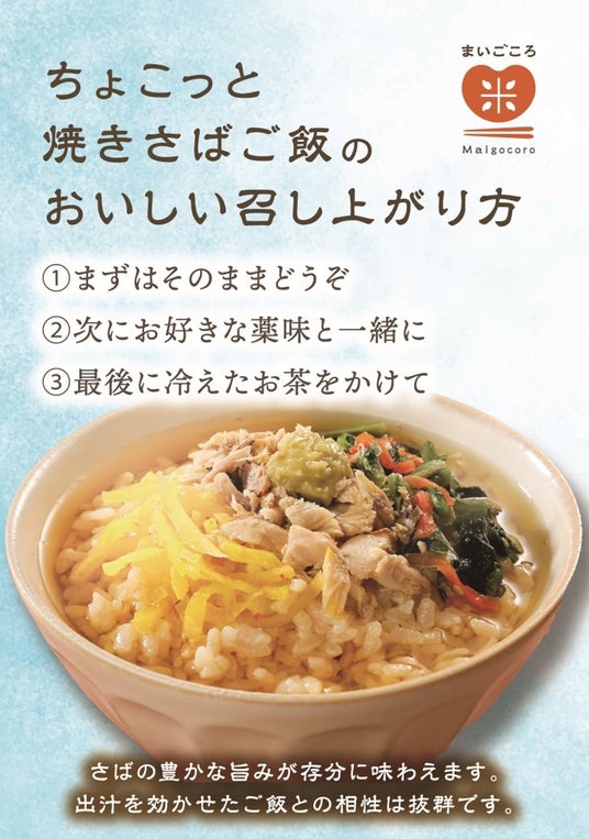 お出汁の効いた風味豊かな茶飯に、国産の鯖と青菜のおひたし、たくあんをトッピングした、ちょっと食べたい時にピッタリな逸品です。