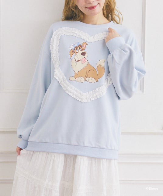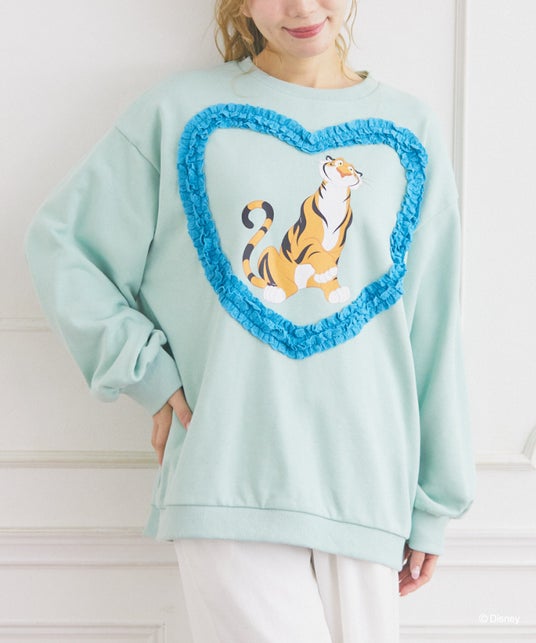 先行販売する新作アイテムでは、秋らしいレオパード柄のパーカーとチュールスカートが登場。柄には、ミッキーシェイプが隠れた遊び心のあるデザインです。パーカーは「ミッキーマウス」の耳をイメージしたフリル付きフードで可愛らしさを表現しました。また、「ラジャー」、「ナナ」、「フィガロ」のプリントとフロントにあしらわれたレースのハートモチーフがキュートなトレーナーを展開。そのほか、『アナと雪の女王』の作中に「アナ」が戴冠式で着用したドレスをイメージしたトートバッグもご用意しております。