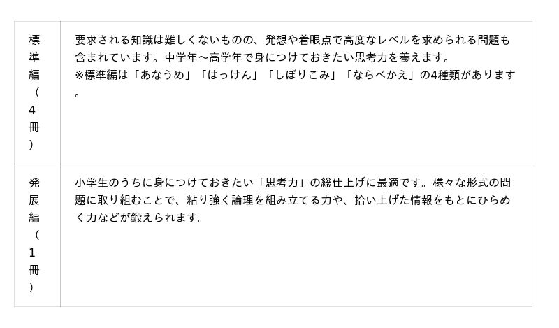 (「標準編」は小学3年生~5年生推奨、「発展編」は小学5年生・6年生推奨)