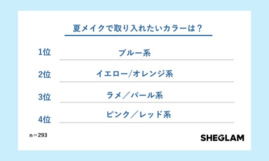 夏メイクに取り入れたいカラーランキング1位はブルー系!