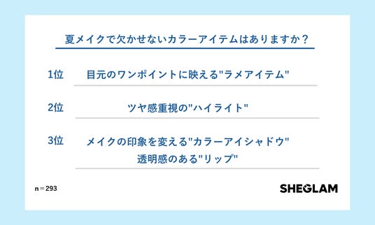 150以上の国と地域で展開するグローバルコスメブランド「SHEGLAM」は、10~30代の女性、計300人を対象に「夏のカラーメイクに関する意識調査」を実施しました。