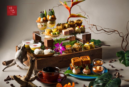 この夏CE LA VI TOKYOが贈る「ASIAN RESORT AFTERNOON TEA」は、トロピカルな果実や爽やかな柑橘の風味が織りなす、南国気分あふれるアフタヌーンティーです。