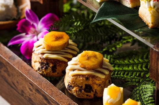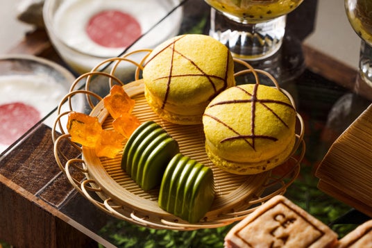 ラインナップには、メロンをかたどったマカロンが印象的な涼やかパフェや、ひまわりを模したレモンマンゴータルト、キャラメリゼしたバナナをのせたチョコバナナスコーンなど、遊び心を効かせた一品も。