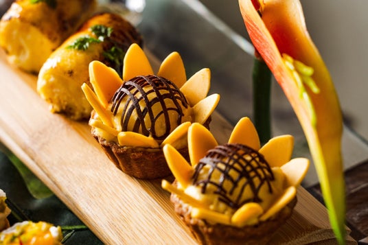 さっぱりとしたレモンのクリームに甘酸っぱいマンゴーソースを合わせたタルト。ひまわりの形を模した愛らしいデザインで、見た目も味わいも楽しめる一品です。