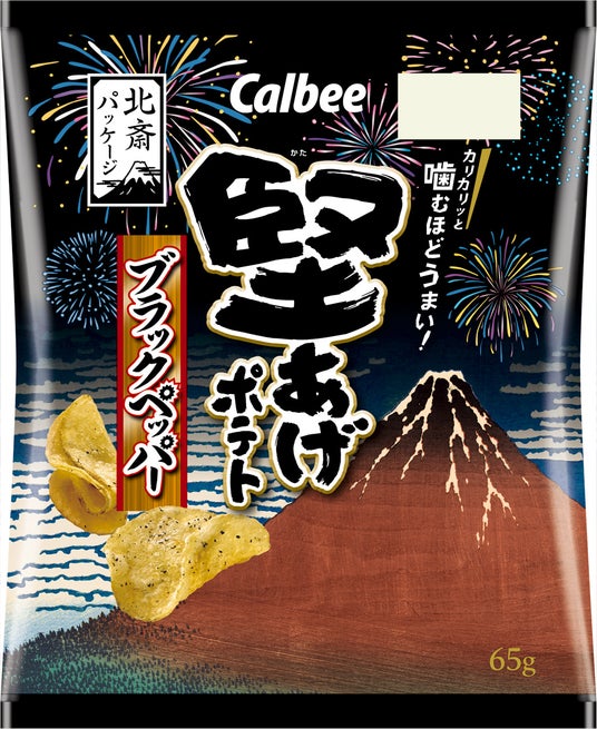 期間限定の葛飾北斎パッケージが今年も登場!「冨嶽三十六景」に日本の夏の美しさを感じられる花火をあしらったデザイン『堅あげポテト うすしお味/ブラックペッパー/焼きのり味』