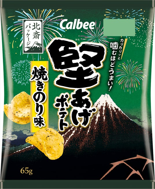カルビー株式会社(本社:東京都千代田区、代表取締役社長兼CEO: 江原 信)は、‟噛むほどうまい!”堅い食感が人気の「堅あげポテト」の定番3商品『堅あげポテト うすしお味/ブラックペッパー/焼きのり味』のパッケージを2025年7月28日週から順次、墨田区のすみだ北斎美術館所蔵の葛飾北斎(以下、北斎)が描いた「冨嶽三十六景」作品のデザインに期間限定で切り替えます。※コンビニエンスストアでの取り扱いはありません。2025年9月上旬終売予定。終了後、別デザインに変更。