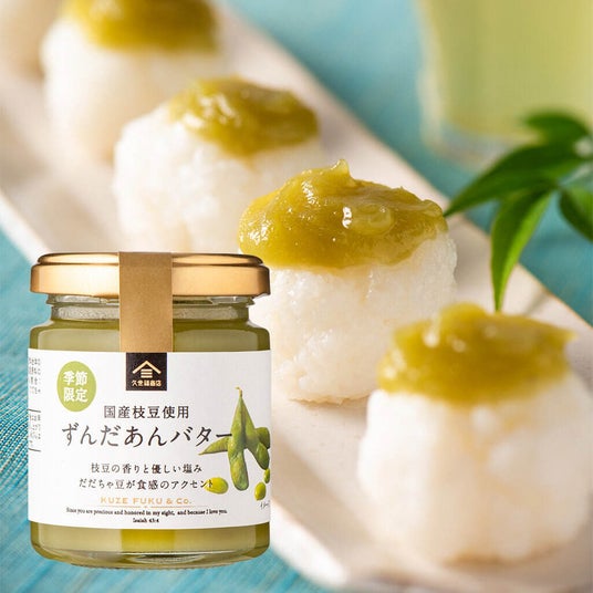夏限定のずんだあんバター。枝豆と白あんを絶妙にブレンドし、なめらかで濃厚な口当たりに仕上げました。さらに、粗くつぶした“だだ茶豆”を加えることで、食感のアクセントが楽しめます。夏ならではの贅沢な味わいを、ぜひお試しください。