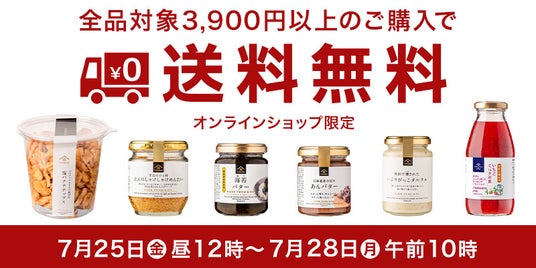 株式会社サンクゼールは、久世福商店・サンクゼール公式オンラインショップ限定で7月25日(金)昼12:00~7月28日(月)午前10:00まで「送料無料キャンペーン」を実施いたします。通常、合計5,000円(税込)以上のご注文で送料無料となるところ、合計3,900円(税込)以上のご注文で送料無料となります。大切な方への夏の贈り物や、これまで気になっていたアイテムなど、ぜひこの機会にチェックしてみてくださいね!