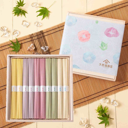 職人の手作業で丁寧に延ばされたそうめん。機械では出せないコシとのど越しが人気の秘密です!紫芋や梅肉など5色のそうめんが夏の食卓を華やかに彩り、喜んでいただけること間違いなしです。