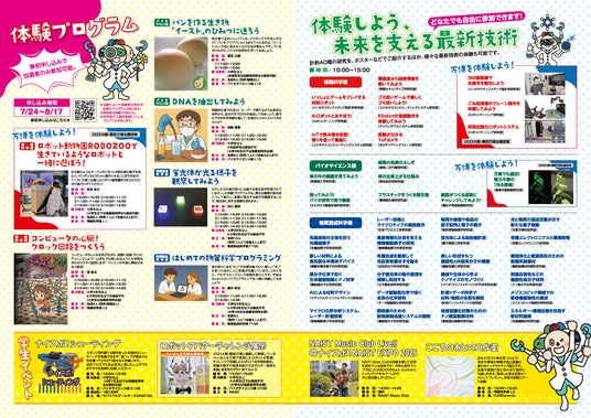 本イベントでは、本学で行われている教育研究を広く一般の方々にもご理解いただけるよう、展示・デモンストレーションによる紹介を行います。また、子供達が楽しめる体験型のプログラムに加え、フリーマーケットやキッチンカーなど、楽しい企画も多数ご用意しています。