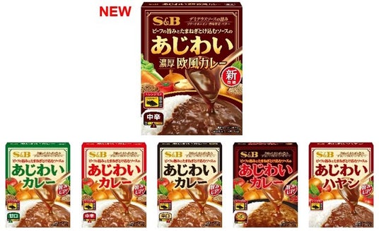 エスビー食品株式会社は、ソースのおいしさにこだわった「あじわいカレー」シリーズから、「あじわい 濃厚欧風カレー 中辛」を新発売し、「あじわいカレー(甘口・中辛・辛口・大辛)」「あじわいハヤシ」をリフレッシュします。