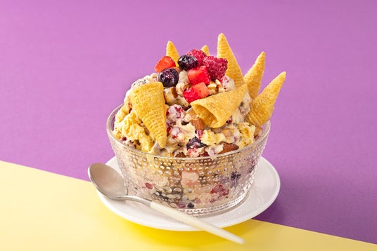 【ベリーナッツアイス】見た目もかわいいひんやりスイーツにアレンジ!アイスにナッツ・フルーツ・とんがりコーンを混ぜ合わせれば、韓国風アイスの出来上がり!