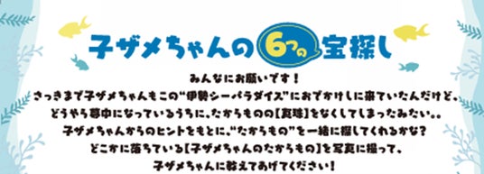 伊勢シーパラダイスを舞台にした、館内回遊型のたからさがしイベント。伊勢で見つけた大切な“真珠”をなくしてしまった子ザメちゃんのために、水族館内でヒントを頼りに真珠を見つけてスマホで撮影しよう!