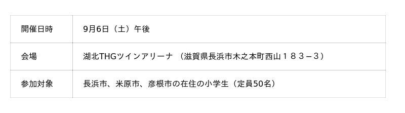 本キャンプでは、チーム強化を目的とした合宿練習を行うだけでなく、主に湖北エリアにお住まいの滋賀県民の皆様に滋賀レイクスと親しんでいただくための関連イベント実施も計画しております。