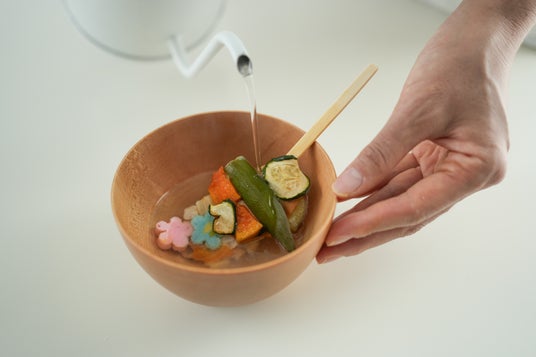 「おむすびシェフ」は、子どもが主体でつくる、おむすびとみそ汁の教育ミールキットです。作り方の動画を見ながら、簡単な手順で、包丁や火を使わずに子ども自身が調理可能です。野菜たっぷりのおにぎりのレシピを考案したのは、料理研究家の福田淳子氏。子どもが野菜を食べやすいよう、調理法や味付けを工夫して、食材の風味・色合い・食感が楽しめます。お湯を入れて混ぜるだけでみそ汁が完成する「まほうのみそスティック」は、野菜を完全なフリーズドライにせず、50%の水分を残すセミドライ製法を採用し、特許庁の実用新案権も取得しています。加熱による変性が少ないため、野菜本来のシャキシャキ感や色味を残すことに成功しました。