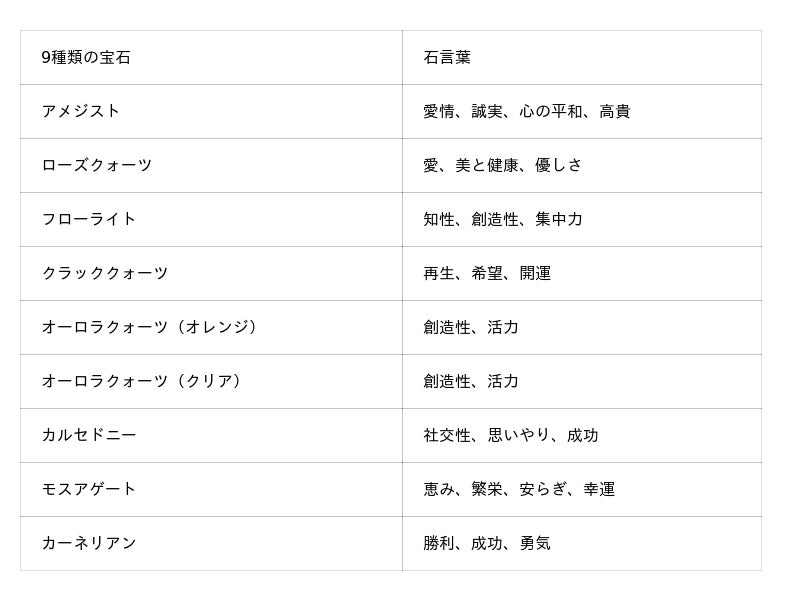 9種類の宝石からお好きな宝石をチョイスして、オリジナルのブレスレット作りを体験できます。初めての方でもお楽しみいただけるよう、どの長さでもお1つ2,000円となります。また、2点セットのご注文で3,000円となるため、かなりお得です。スタッフが必要な時に楽しく、優しく、一緒に作成のお手伝いをいたします。