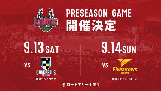 バンビシャス奈良は、9月13日(土)、14日(日)に、ロートアリーナ奈良にてプレシーズンゲームを行うことになりましたので、お知らせいたします。