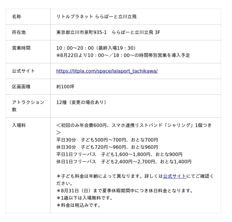 公式サイト:https://litpla.com/space/lalaport_tachikawa/