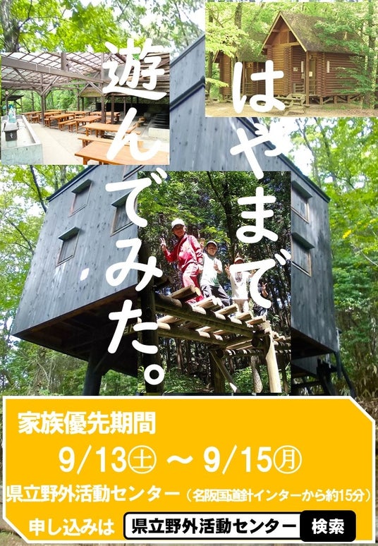 対象:家族・グループ(1次受付は代表者が県内在住者に限ります)