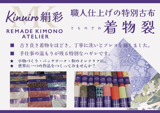 まるやま・京彩グループのリサイクルブランド「絹彩(きぬいろ)」が職人仕上げの特別古布「着物裂(きものぎれ)」を販売開始!