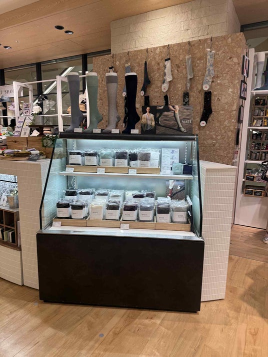 MAEEコンプレッションソックスは、ファッション性の高い上質なソックスでありながら、履くだけで気になる脚のむくみを予防・軽減できる着圧ソックスとしてご好評をいただいています。そして、2025年4月には、大阪及び関西エリアでは初となるPOP UPイベントを阪神梅田本店で1か月にわたり開催し、ソックスショップ過去最高の売上を達成しました。
