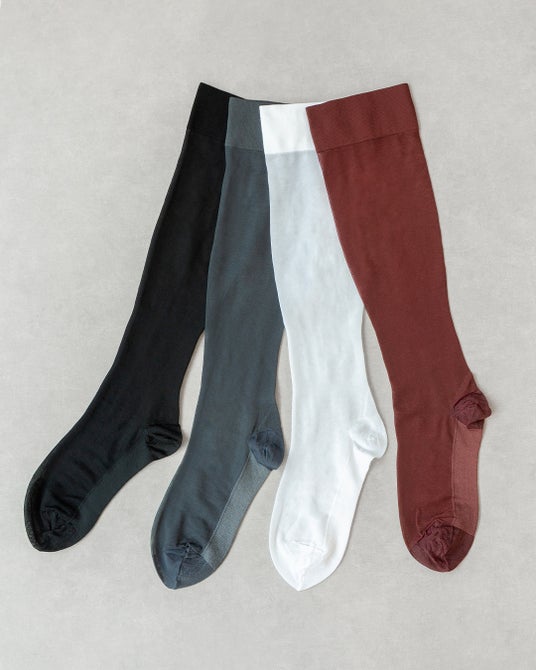 ・美しいツヤ肌を演出する、ナイロン製のシアー着圧ソックスです。