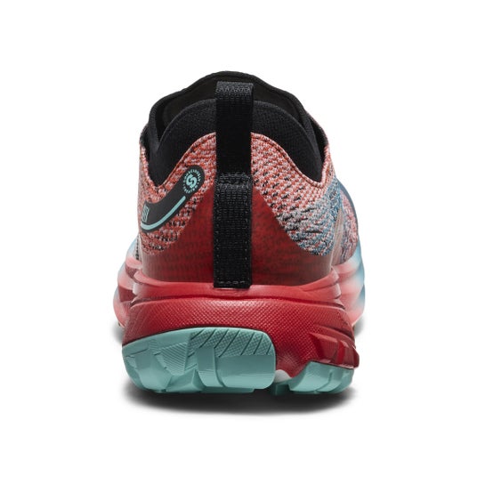 つま先にゆとりを持たせた広めの構造(ワイドフォアフット構造)により、足指が自然に広がりやすく、未舗装の不整地でも快適さと安定性を確保。通気性と耐久性を兼ね備えたポリエステルとTPUのニットアッパー、パッド入りタン、伸縮性のあるニットカフを組み合わせることで立体的に足を包み込み、高いフィット感を実現。そして、反発性と耐久性を両立した高エネルギーミッドソールを採用し、特にレクリエーショナルランナーに多い「かかと着地」に最適化された構造です。足への負担を軽減する設計と、環境への配慮を両立したトレイルランニングシューズで、長距離のランでも快適さとパフォーマンスを持続します。