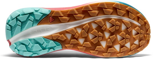 KEENの象徴的な、つま先にゆとりを持たせた広めの構造(ワイドフォアフット構造)により、自然な足指の広がりをサポート