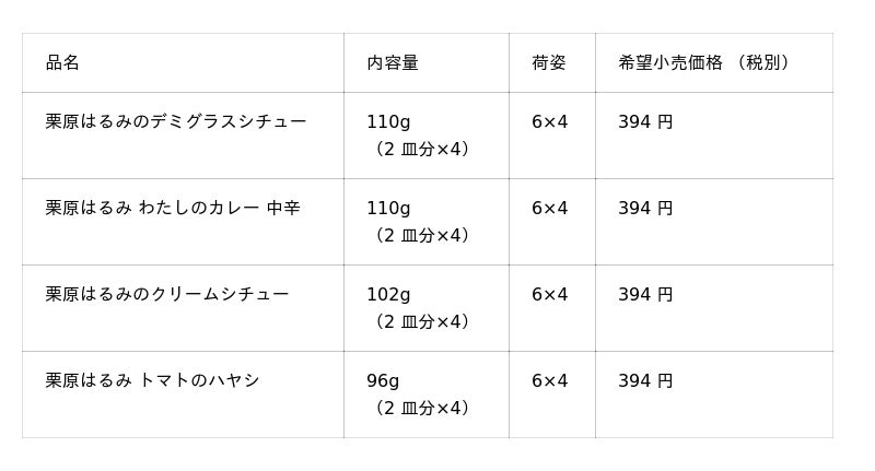 栗原はるみ手作りの味わいをそのままに「栗原はるみのデミグラスシチュー」8月11日新発売「栗原はるみ わたしのカレー 中辛」「栗原はるみのクリームシチュー」「栗原はるみ トマトのハヤシ」リフレッシュ