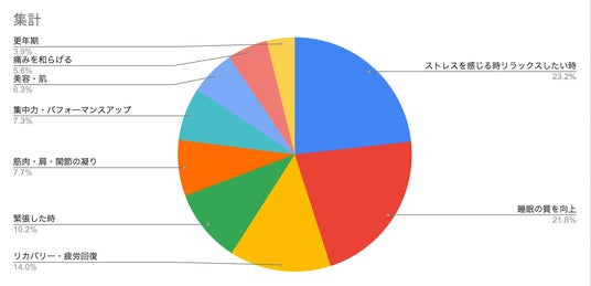 【ストレスを感じる時リラックスしたい時(23.2%)】【睡眠の質の向上(21.8%)】でした。